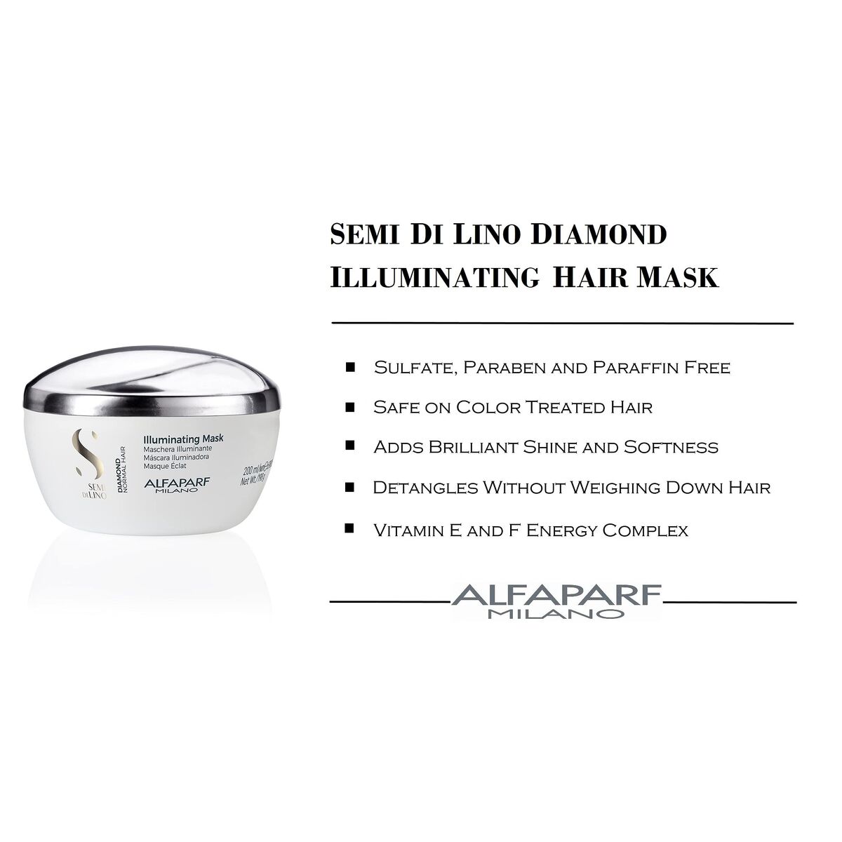 Want to enhance your image and highlight your beauty? Then the Hair Mask Alfaparf Milano Semi Di Lino Diamond 200 ml (1 Unit) will help you to achieve your goals! Enjoy the benefits and advantages of Alfaparf Milano products and other hairdressing accessories from 100% original brands.