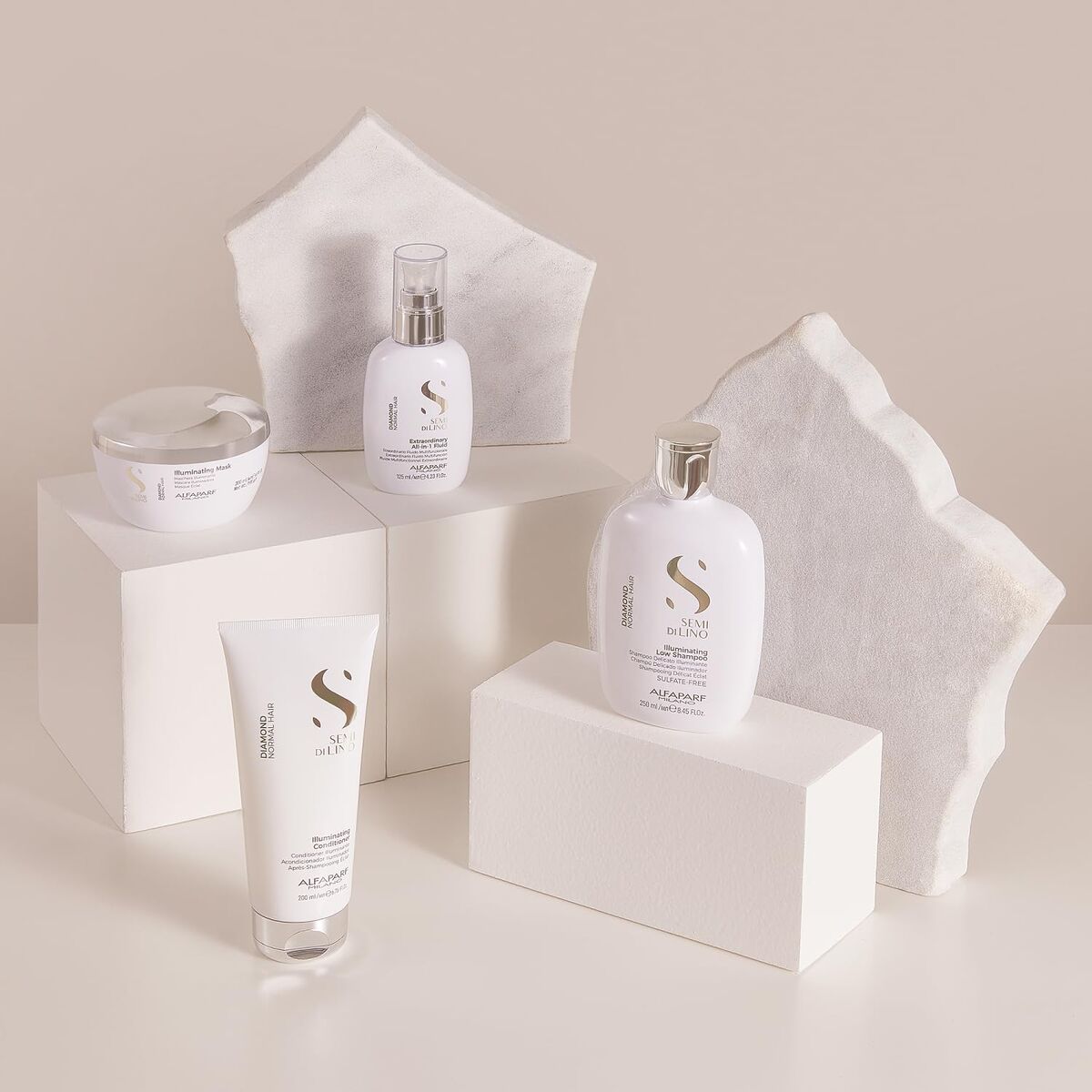 The Semi Di Lino Diamond hair mask by Alfaparf Milano is a specialized treatment designed to revitalize and enhance the appearance of oily hair, providing shine and softness without weighing down the hair fiber. Offered in a 200 ml format, this creamy-textured mask allows for even and effective application, ensuring rapid absorption of active ingredients. Its formula includes selected components such as Polysorbate 20, potassium sorbate, and propylene glycol, known for their conditioning and preservative properties, helping to keep hair hydrated and protected against external aggressors. Suitable for both professional and home use, it stands out as a vegan product, ideal for those seeking environmentally friendly options free from animal-derived ingredients. Especially recommended for women, it can be applied after washing to achieve more manageable and radiant hair, restoring a healthy look without leaving a heavy or greasy feel. Made in Italy and also distributed in Spain, the Diamond range from Alfaparf Milano is recognized for enhancing natural shine and improving hair texture without disturbing its physiological balance. In summary, this mask is an excellent choice for those seeking effective and sensorial care, delivering visible results in hair health and shine from the very first uses.